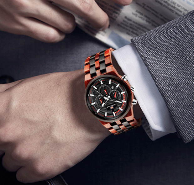 Invest in a timepiece that combines craftsmanship, durability, and eco-consciousness. Our wooden watch with a large dial and multi-function movement caters to the modern man who values both style and functionality. Shop now and experience the beauty of nature on your wrist.